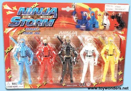 57361A Ninja Storm 5 pcs ninja figures in assorted colors. card size: 11.5"x8.25". 24 pcs/inner.