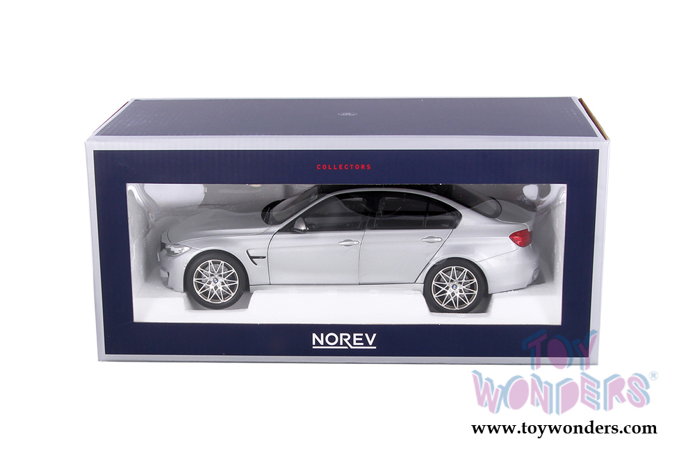183235 Norev - 2017 BMW M3 Competition Hardtop. 1:18 scale diecast collectible model. This BMW is approximately 10"L x 3.75"W x 3"H rubber tires, detailed interior and exterior. Has openable doors, hood, and trunk. Item 183235 is in SILVER with black top. This 2017 BMW is manufactured by Norev. Individually packed in a box. Box size: 12.75"L x 6.5"W x 5.75"H.