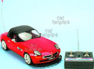 GP910 R/C BMW Z-8. 15" dual channel radio controlled BMW convertible sports car. Full function allows the sports car to be driven in all directions with turbo speed. Requires 1 "9V" & 8 "AA" batteries. Assorted colors. 18 kilometer/hour (11.18 mph). Note: This item contains no diecast metal.
