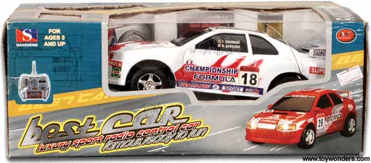 8543A Best Car Luxury Sport Radio Controlled Car. 8 " long, full function, flashing light, smooth and easy controls, includes controller and rechargable battery with 120V charger. Requires 1 "9V". Batteries included. Box size: 12.75" x 7" x 4.75". 12 pcs/inner. Note: This item contains no any diecast metal.