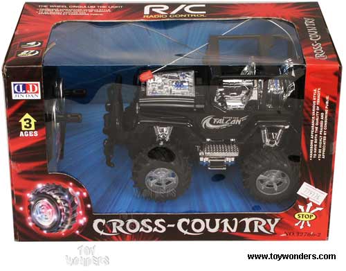 32766/1 R/C Cross-Country Falcon. 7" radio control car with full-functions which goes forward, reverse, left and right turn, stop. Wheels with lights. Uses 3 “AA” & 1 “9V” batteries. Box size: 10"Lx 5.3"Wx 6"H. 18 pcs/inner in assorted colors. Note: This item contains no any diecast metal.