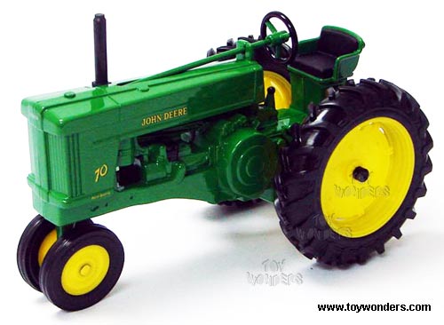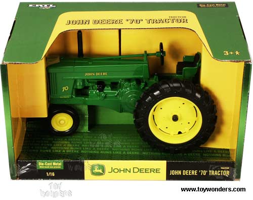 15785 RC2 ERTL John Deere - "70" Farm Tractor. This diecast collectible tractor is 1:16 scale about 8" long. Individually packed in a box. Box size: 10.75"Lx 6.5"Wx 6.25"H. This farm tractor is manufactured by RC2 Brands. 15785 in GREEN color.