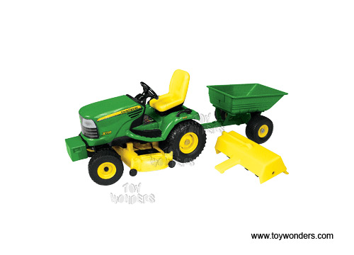 15829 RC2 ERTL John Deere - X728 Garden Tractor w/ Cart & Tiller. This diecast collectible lawn tractor is 1:16 scale about 8.25" long. Individually packed in a box. Box size: 10.75"L x 6"W x 4.5"H. This farm tractor is manufactured by RC2 Brands. Item 15829 is in GREEN color.