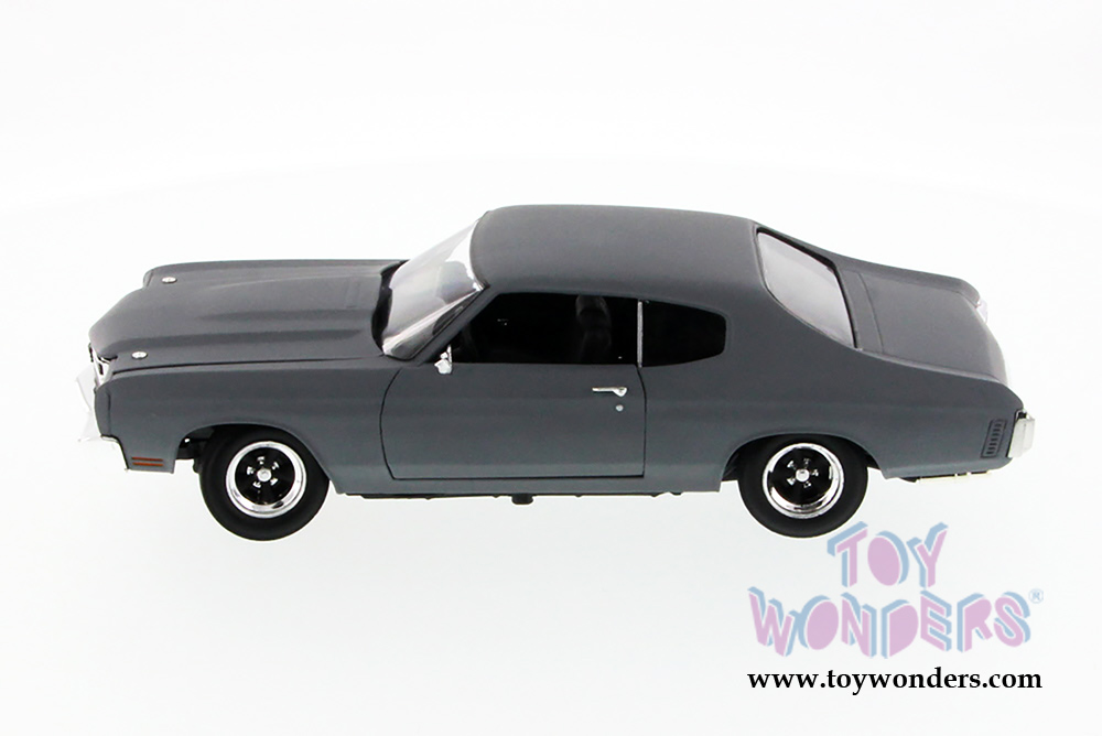 39579GY RC2 Johnny Lightning Fast & Furious - 1970 Chevy Chevelle SS Hardtop. 1:18 scale diecast collectible model car. This Chevy Chevelle is a 10.5"H x 4"W x 3"H diecast metal car with openable hood and doors. Sits on a display plaque. 39579GY is in PRIMER GRAY color. This Chevrolet Chevelle is manufactured by RC2 Brands. Individually packed in a window box. Box size: 13.5"L x 6.25"W x 5.75"H. GM is a trademark of the General Motors Corporation.