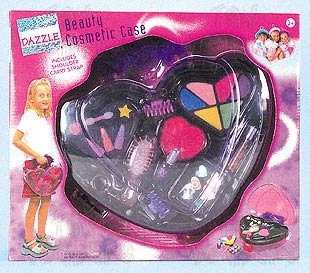 50780 Real Cosmetic Beauty Set 11" heart shape cosmetic carry case contains real lip stick, nail polish, cream eye shadow, body gel with glitters, brush, hair clips, and more. assorted styles. box size: 15.5"Lx3.5"Wx12.5"H.