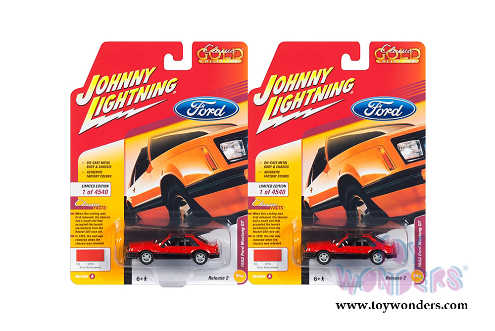 Round 2 Johnny Lightning - Classic Gold 2018 Release 2 Set A | Ford Mustang GT T-Top (1982, 1/64 scale diecast model car, Brite Bittersweet Orange) JLSP013/24A