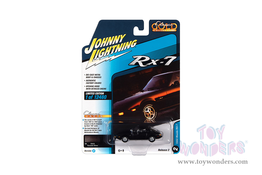 Round 2 Johnny Lightning - Classic Gold 2022 Release 2 Set A | Mazda RX-7 (1982, 1/64 scale diecast model car, Tornado Silver Metallic) JLSP244/24A