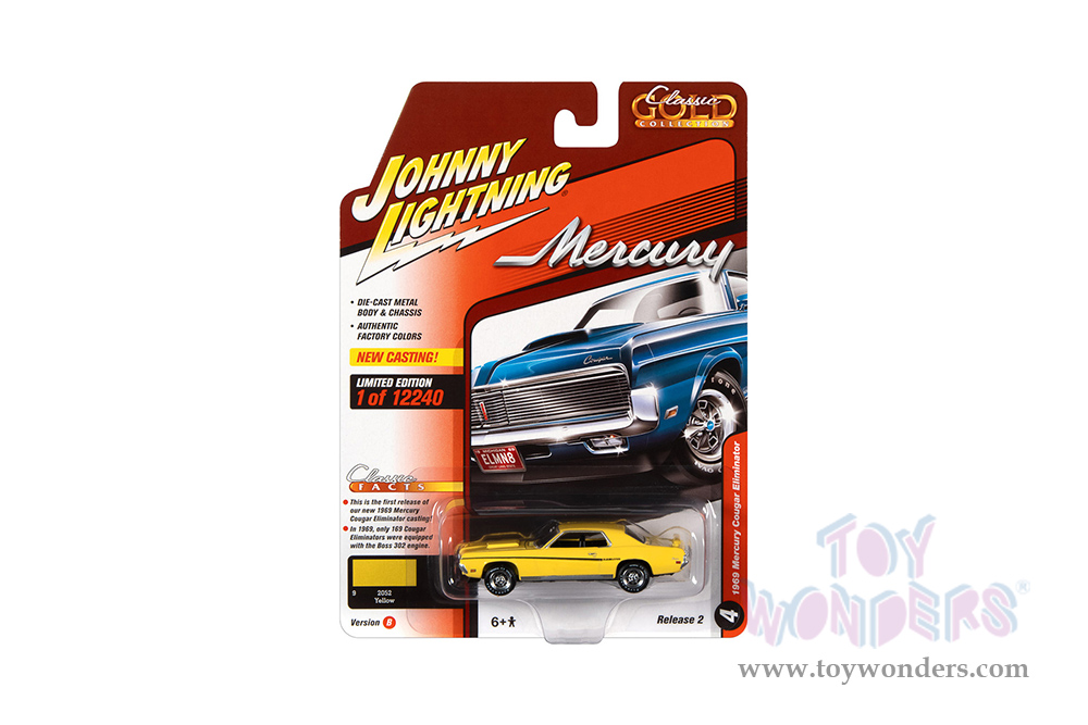 Round 2 Johnny Lightning - Classic Gold 2022 Release 2 Set B | Mercury Cougar Eliminator (1969, 1/64 scale diecast model car, Yellow) JLSP246/24B