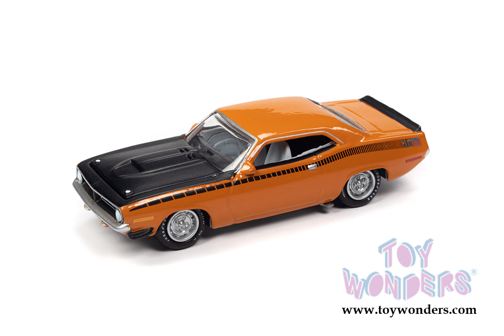Round 2 Johnny Lightning - Collector Tin | Plymouth AAR Barracuda (1970, 1/64 scale diecast model car, Vitamin C Orange/Black) JLSP108/24A