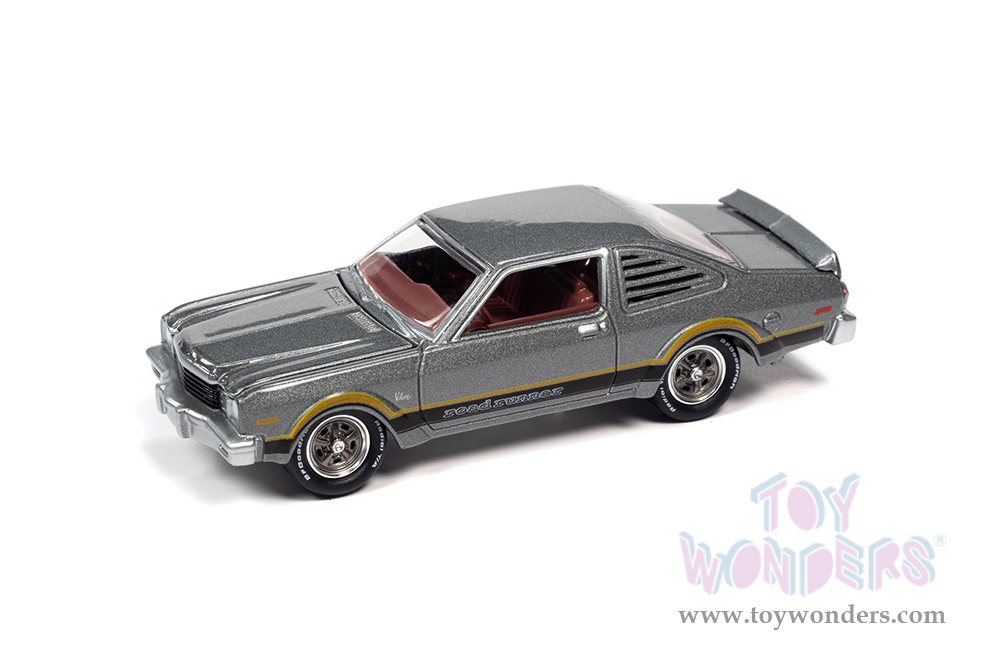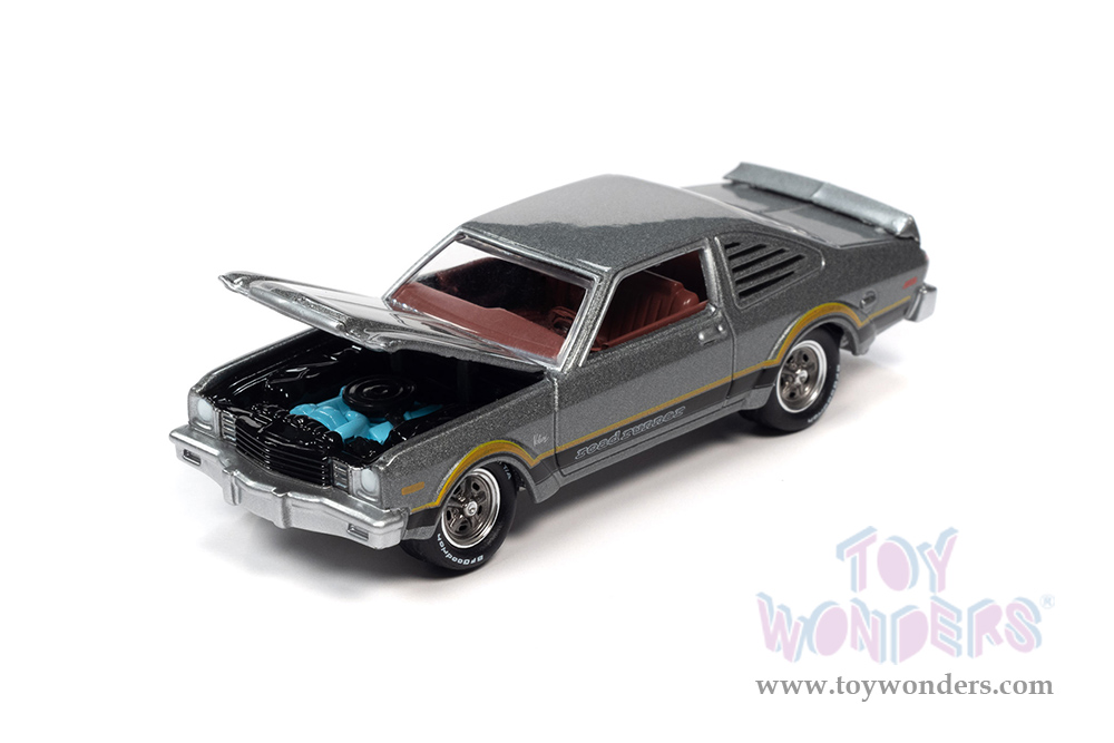JLSP197/24B Round 2 Johnny Lightning - Muscle Cars U.S.A. 2021 Release 4 Set B | 1976 Plymouth Volare Road Runner - OK Used Cars. 1:64 scale diecast collectible model. 6-car set. These cars are 2.75" long. Special Edition. Opening hood. 6 pcs/inner. Manufactured by Round 2. Each car individually blister carded. Card size: 5.5" x 7.5". Item JLSP197/24B is in Silver Cloud Poly w/Black & Orange Side Stripes. Limited edition to 18056 pcs.