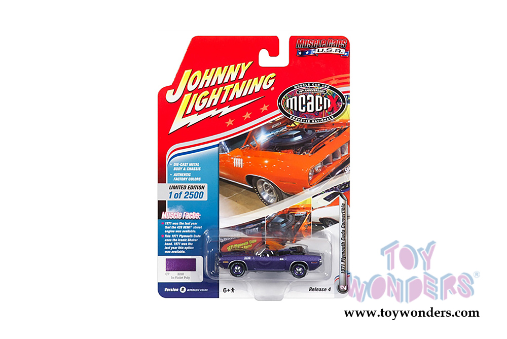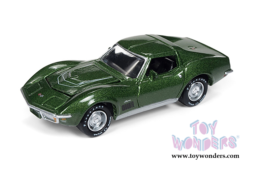 JLMC016/48B Round 2 Johnny Lightning - Muscle Cars USA 2018 Release 4 Set B. 1:64 scale diecast collectible model car. These cars are approx. 3" long, authentic factory colors, opening hoods, 6-Car Set, factory sealed case and limited edition. GM is a trademark of the General Motors Corporation. Manufactured by Round 2. Each car individually blister carded. Card size: 5.5" x 7.5".