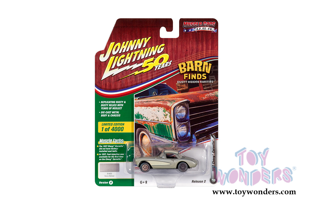 JLMC020/48A Round 2 Johnny Lightning - Muscle Cars USA 2019 Release 2 Set A. 1:64 scale diecast collectible model car. These cars are approx. 3" long, authentic factory colors, opening hoods on some models, 6-Car Set, factory sealed case and limited edition. GM is a trademark of the General Motors Corporation. Manufactured by Round 2. Each car individually blister carded. Card size: 5.5" x 7.5".
