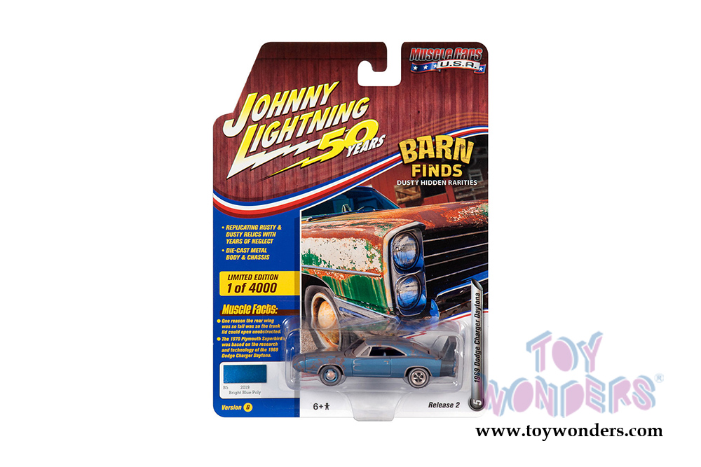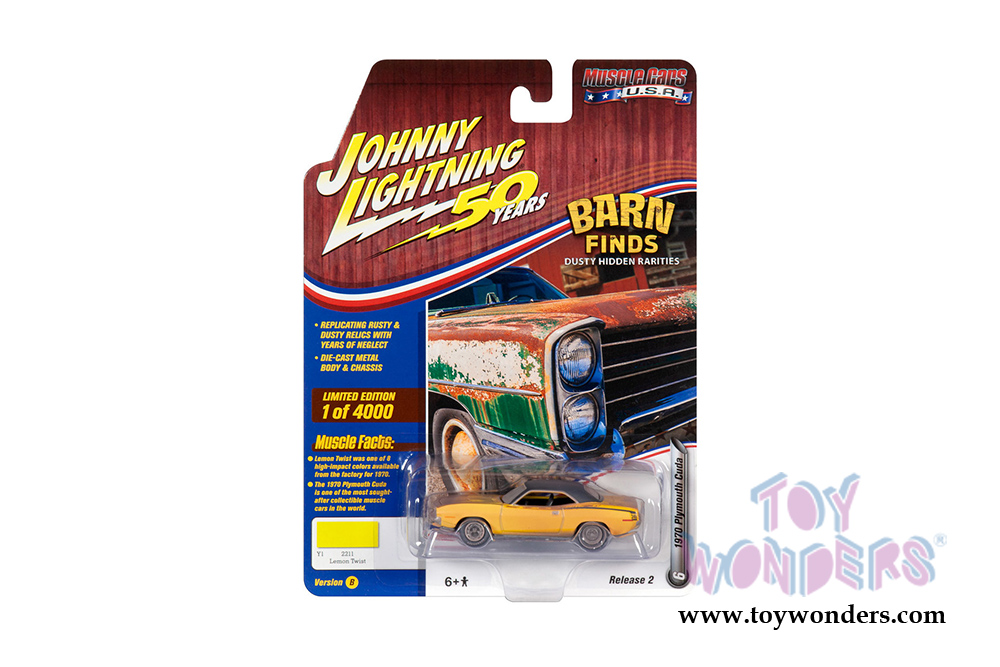 JLMC020/48B Round 2 Johnny Lightning - Muscle Cars USA 2019 Release 2 Set B. 1:64 scale diecast collectible model car. These cars are approx. 3" long, authentic factory colors, opening hoods on some models, 6-Car Set, factory sealed case and limited edition. GM is a trademark of the General Motors Corporation. Manufactured by Round 2. Each car individually blister carded. Card size: 5.5" x 7.5".