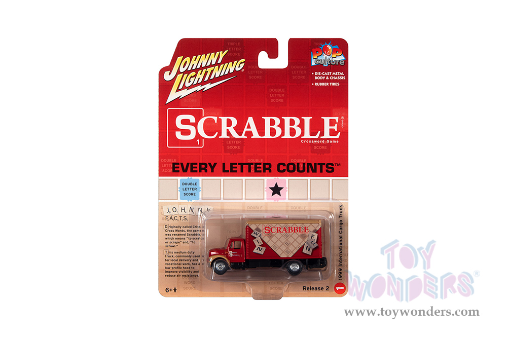 Round 2 Johnny Lightning - Pop Culture Series | Scrabble International® Cargo Truck (1999, 1/64 scale diecast model car, Red) JLSP257/24