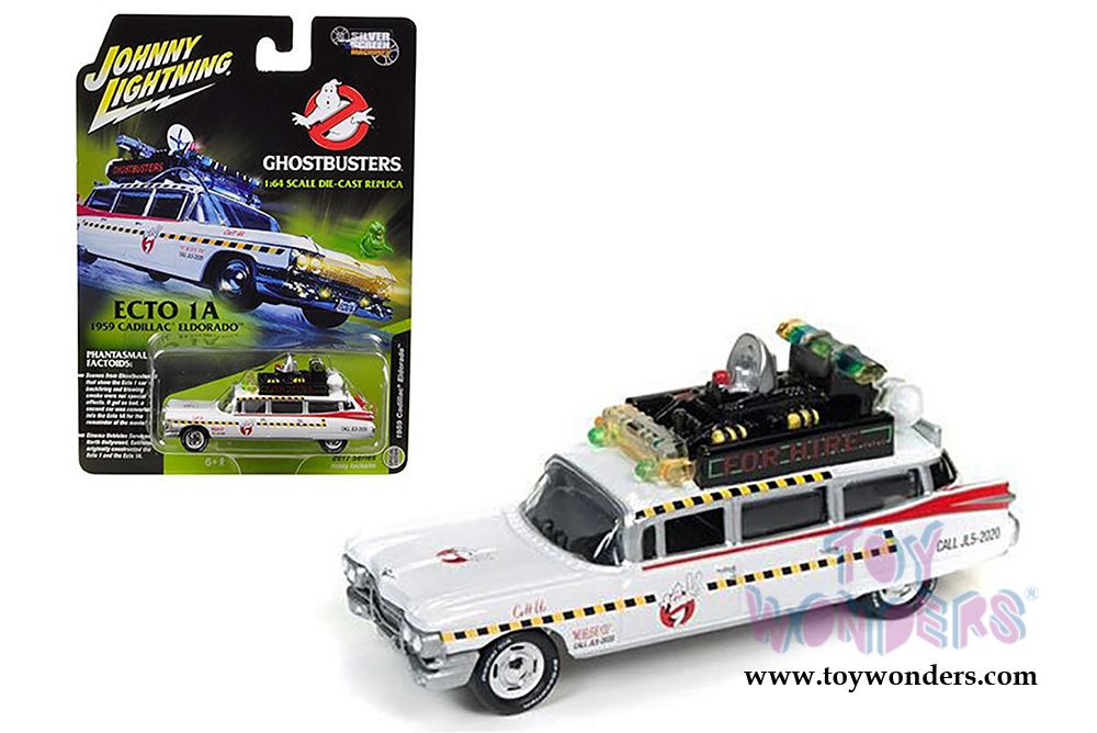 Round 2 Johnny Lightning - Silver Screen Machines | Ghostbusters' ECTO 1A Cadillac ElDorado™ Hardtop (1959, 1/64 scale diecast model car, White/Red) JLSS004/24
