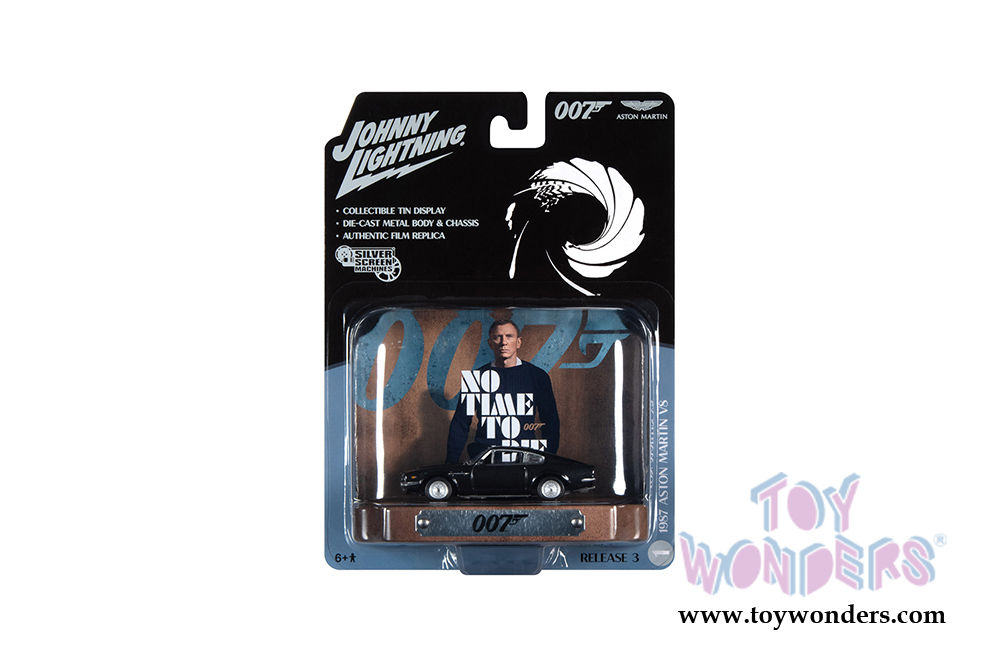 Round 2 Johnny Lightning - Silver Screen Machines James Bond Aston Martin V8 with Collectible Tin Display (1987, 1/64 scale diecast model car, Black) JLSP119/24