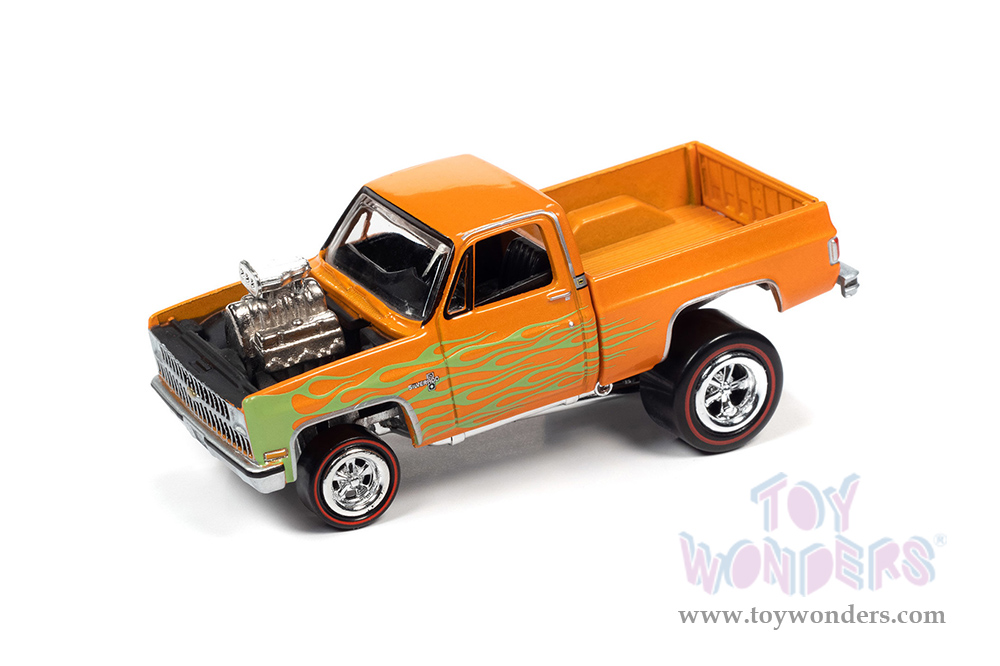Round 2 Johnny Lightning - Street Freaks 2021 Release 3 Set A | Chevrolet® Silverado 10 Fleetside - Zingers! (1981, 1/64 scale diecast model car, Metallic Orange with Lime Flames) JLSP178/24B