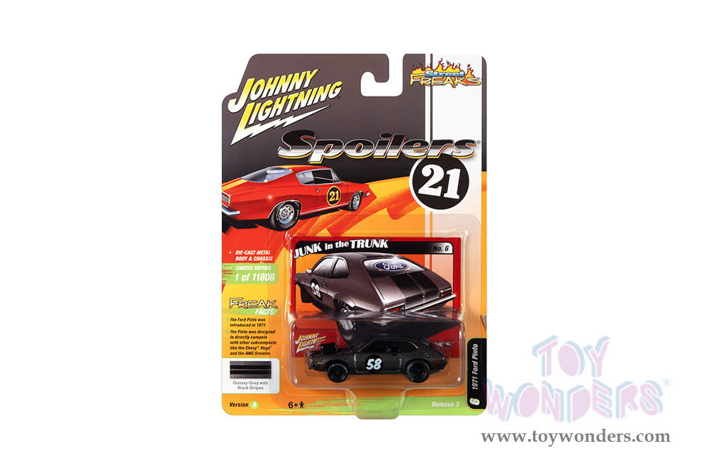 Round 2 Johnny Lightning - Street Freaks 2021 Release 3 Set A | Ford Pinto - Spoilers (1971, 1/64 scale diecast model car, Galaxy Gray/Black stripes) JLSP183/24A