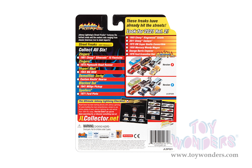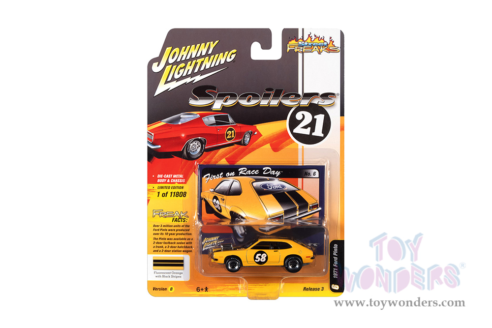 Round 2 Johnny Lightning - Street Freaks 2021 Release 3 Set B | Ford Pinto - Spoilers (1971, 1/64 scale diecast model car, Fluorescent Orange/Black stripes) JLSP183/24B