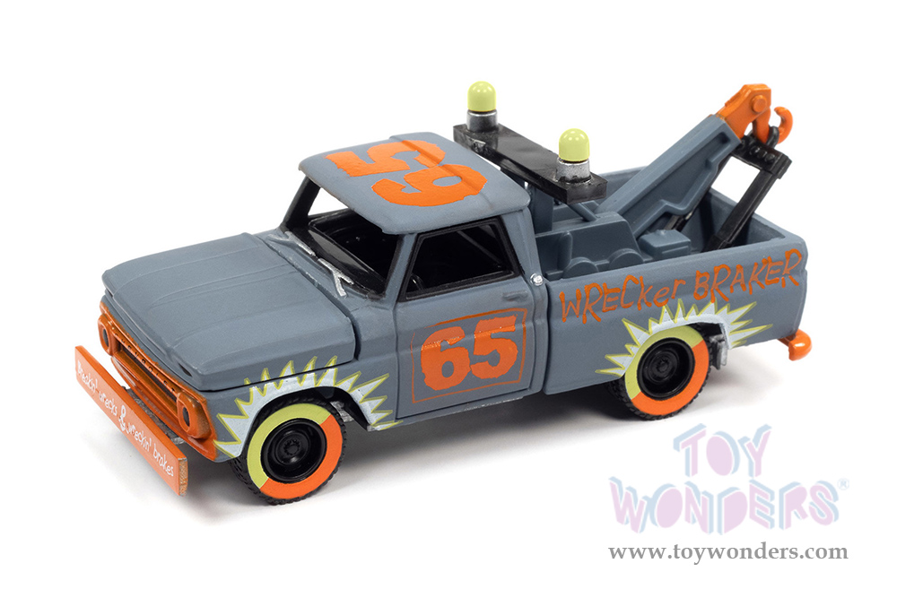 Round 2 Johnny Lightning - Street Freaks 2021 Release 4 Set A | Chevrolet® Tow Truck - Demolition Derby (1965, 1/64 scale diecast model car, Derby Smoke Gray) JLSP209/24A