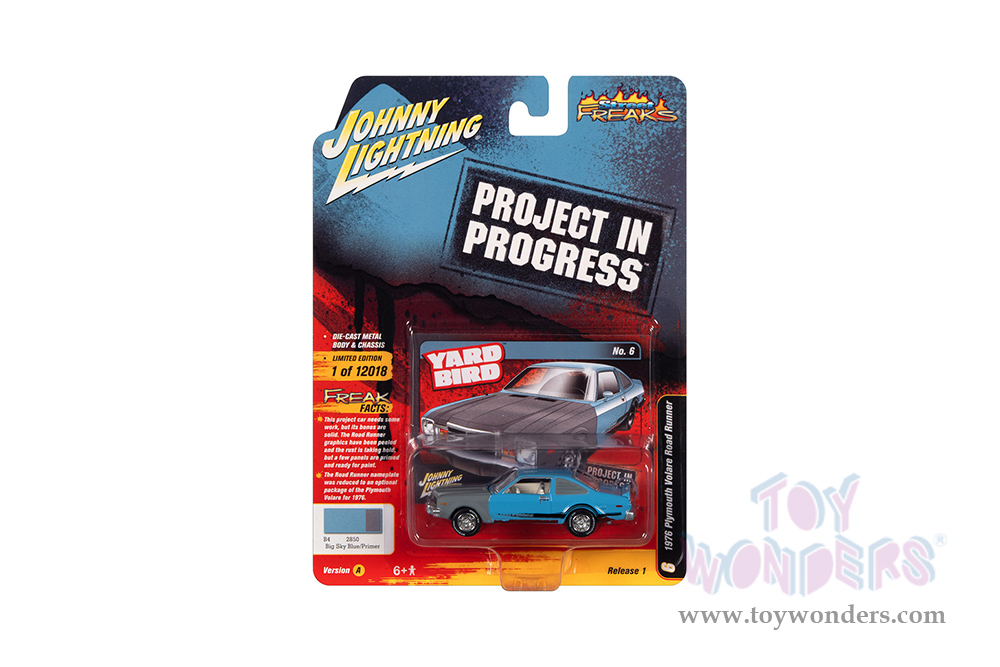 Round 2 Johnny Lightning - Street Freaks 2022 Release 1 Set A | Plymouth Road Runner - Project in Progress (1976, 1/64 scale diecast model car, Big Sky Blue & Primer Gray) JLSP233/24A
