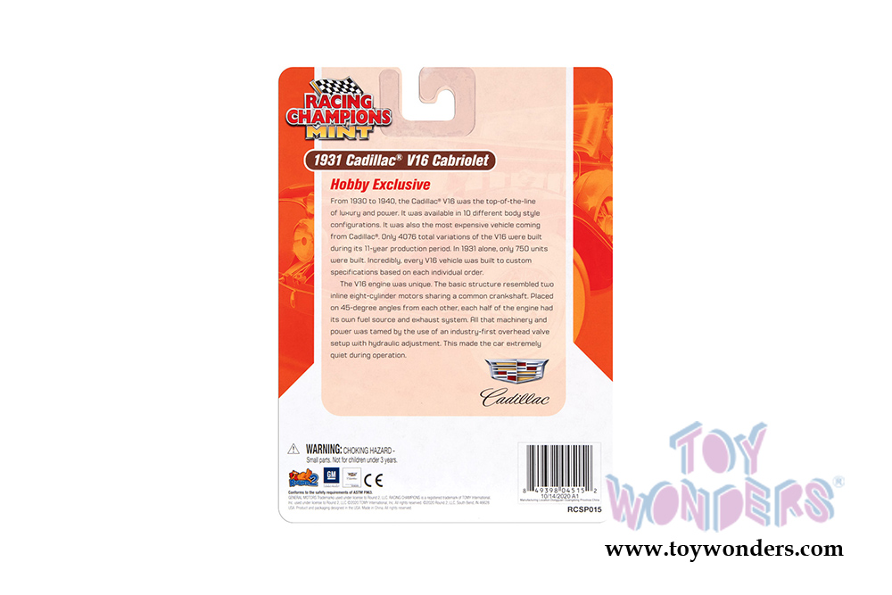 Round 2 Racing Champions Mint - Cadillac® V16 Cabriolet (1931, 1/64 scale diecast model car, Burnt Orange/Brown) RCSP015/24