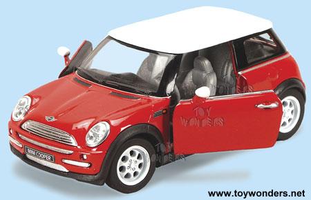 DP6003 New Mini Cooper. 1:24 scale diecast model. This Mini Cooper is a 6" long x 2.75"W x 2.25"H diecast metal with opening doors and rear hatch. This Mini Coop is manufactured by Saico. 6 pcs per display box and in assorted colors. 36 pcs per inner box.