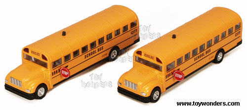 51206 School Bus. 7.25" long yellow school bus with pull out stop sign. This diecast school bus with pull-out STOP sign also has lights and plays music. 12 pcs per display box. 48 pcs per inner box.