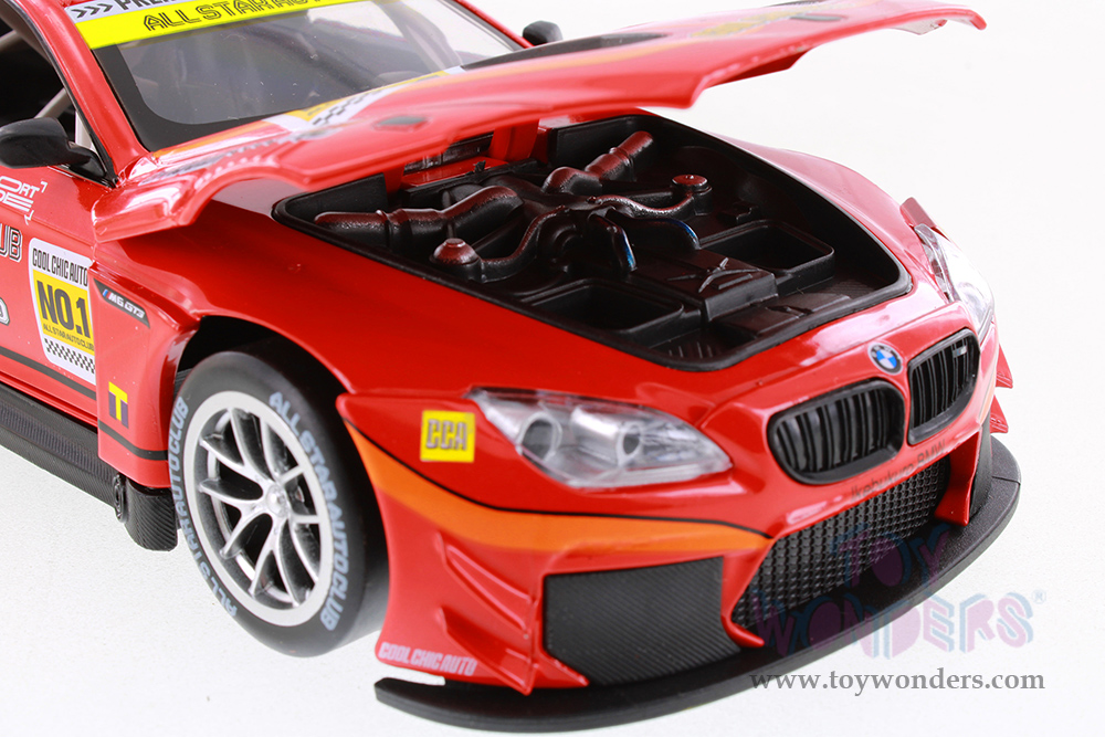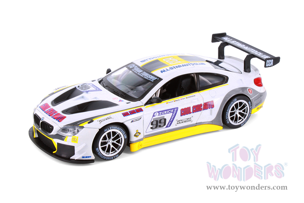 68178D Showcasts® Collectibles - BMW M6 GT3 MCC #99 and MCC #1. 1:24 scale diecast collectible model car. This BMW is an 8.25"L x 3.5"W x 2"H die-cast metal car with freewheeling, steering wheel. Openable doors and hood. 4 pcs per display box in assorted colors.