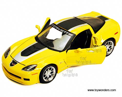 34203 Showcasts Collectibles - 2009 Chevrolet Corvette Z06 Hardtop. 1:24 scale diecast collectible model car. This Chevy Corvette Z06 is a 7.25"L x 3.25"W x 2"H diecast metal with freewheeling, openable doors, and hood. This Chevrolet Corvette Z06 is manufactured by Maisto for Showcasts Collectibles. 4 pcs per display box in assorted colors. GM is a trademark of the General Motors Corporation.
