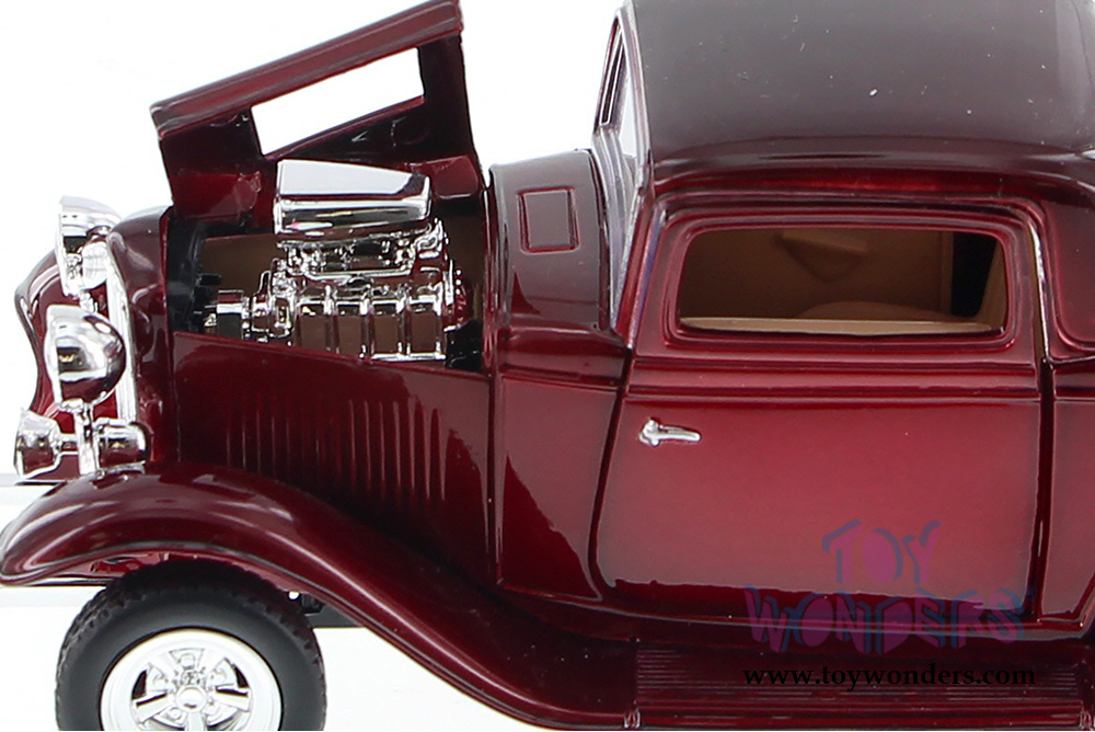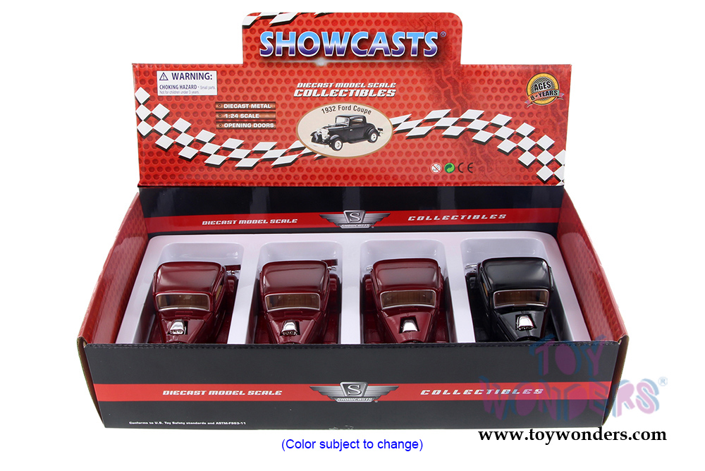 73251/16D Showcasts Collectibles - 1932 Ford Coupe. 1:24 scale diecast collectible model car. This 1932 Ford Coupe classic oldies car is 7.5"L x 3"W x 2.75"H. This 32 Ford Coupe is a diecast metal with workable steering, freewheeling, openable doors, hood, and trunk. This Ford Coupe is manufactured by Motor Max Toys for Showcasts Collectibles. 4 pcs per display box. 73251 in assorted colors.