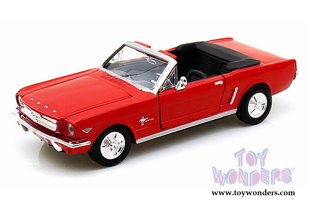 73212 Showcasts Collectibles - 1964 1/2 Ford Mustang Convertible. 1:24 scale diecast collectible model car. This Ford Mustang measures 7.25"L x 3"W x 1.75"H diecast classic car with openable doors & hood. This 64 Ford Mustang is manufactured by Motor Max Toys for Showcasts Collectibles. 73212AC/R is in RED color. Individually packed in a window box WB. Box size: 9.75"Lx 4.3"Wx 4"H.