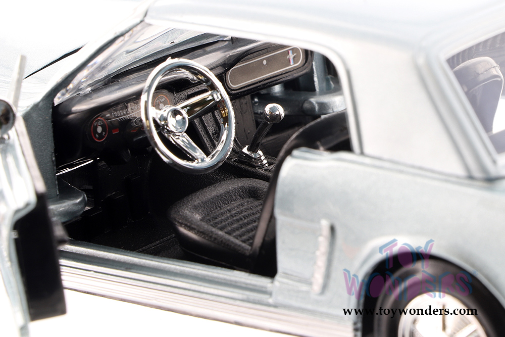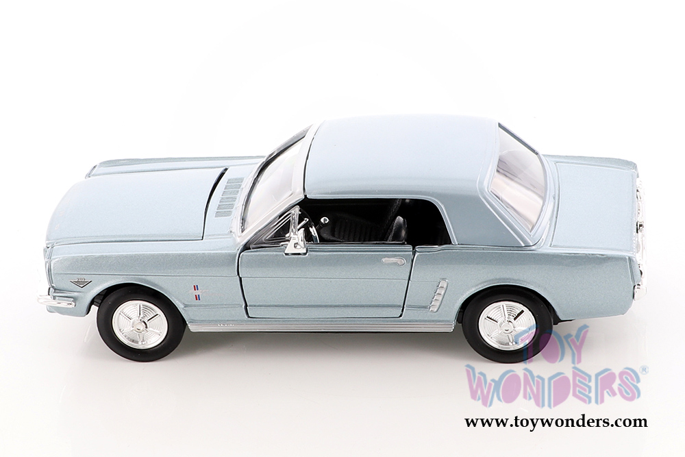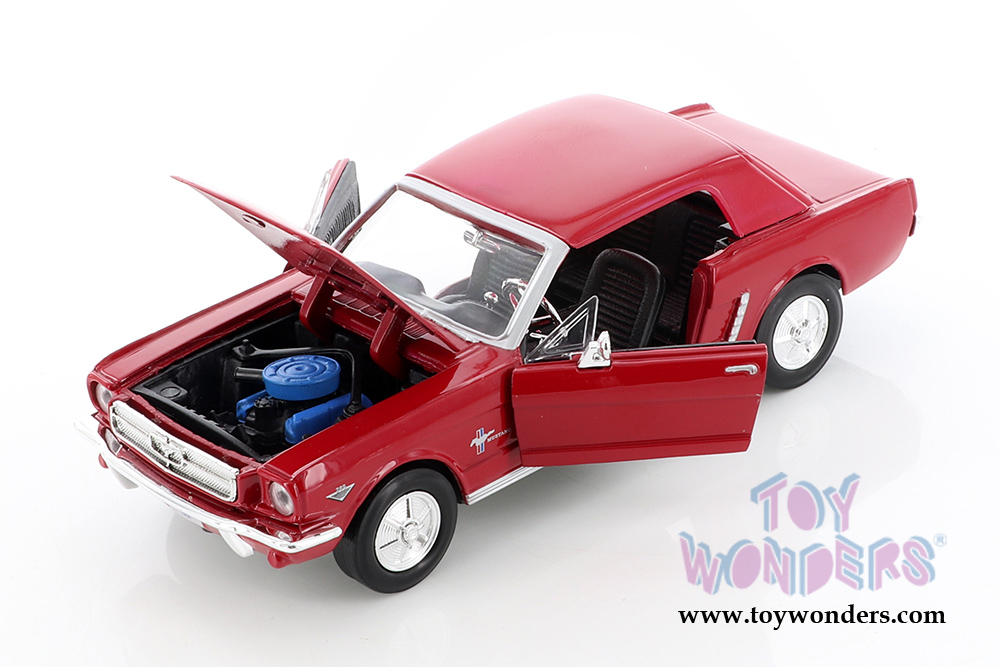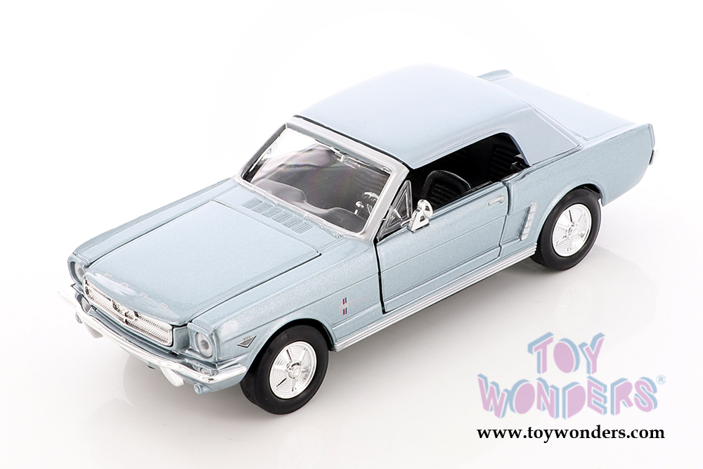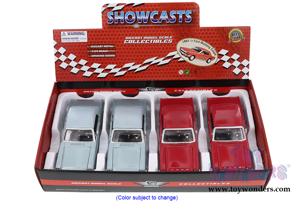 73273/16D Showcasts Collectibles - 1964 1/2 Ford Mustang Hardtop. 1:24 scale diecast collectible model car. This Ford Mustang is a 7.5"L x 2.75"W x 2.25"H diecast metal car with workable steering, freewheeling, openable doors, and hood. This Ford Mustang is manufactured by Motor Max for Showcasts Collectibles. 4 pcs per display box in assorted colors.