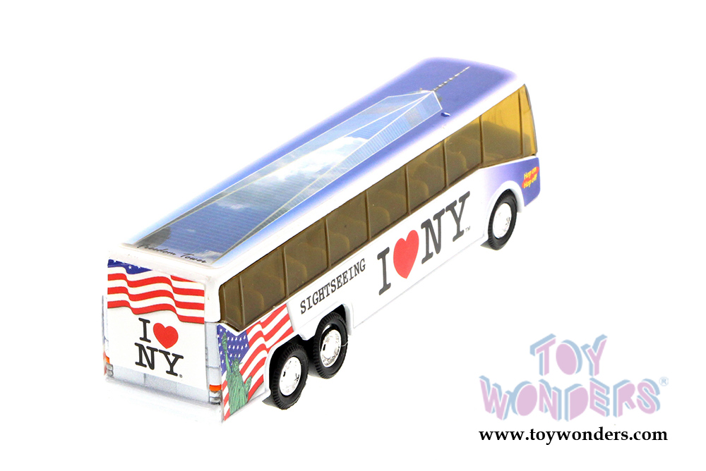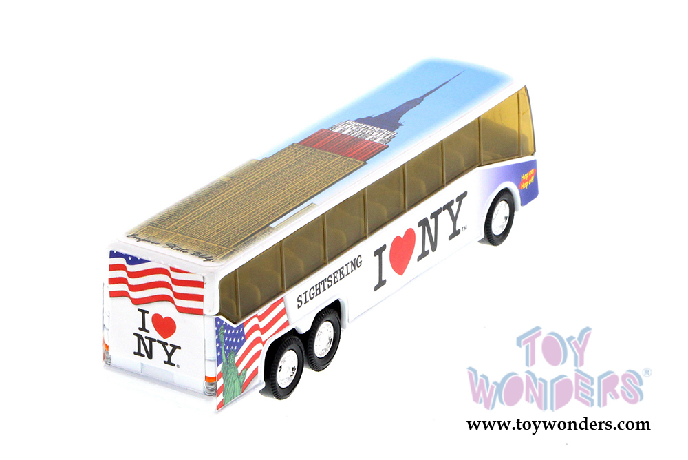 Showcasts Collectibles - I Love New York Coach Bus w/ Statue of Liberty, Empire State Building & Freedom Tower (6" diecast model car, Asstd.) 9803D-ILNY