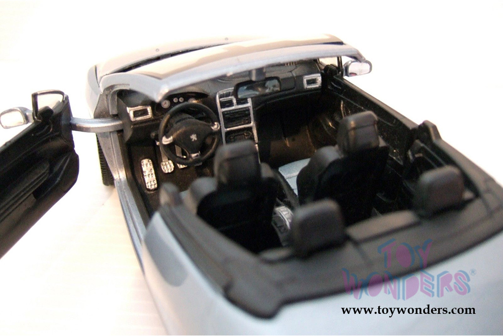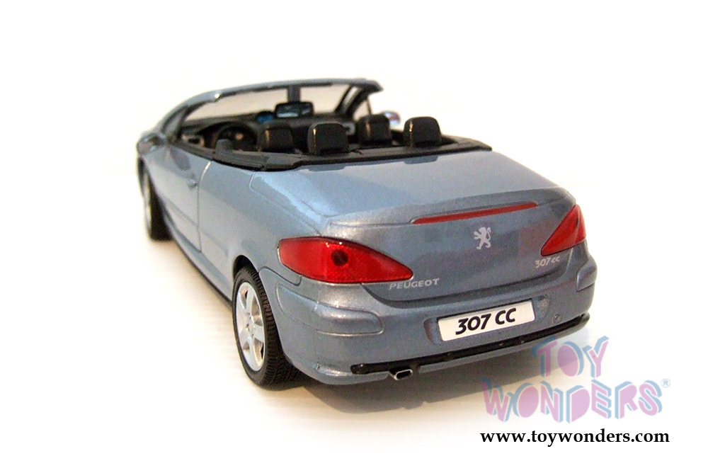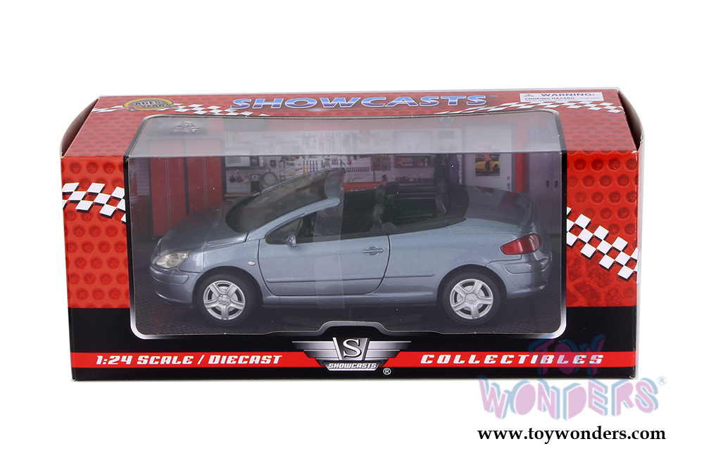 73286BU Showcasts Collectibles - Peugeot 307CC Convertible. 1:24 scale diecast collectible model car. This is a 7.25"L x 3.25"Wx 2.25"H diecast metal car with freewheeling, steerable front wheels, and openable doors, and hood. This Peugeot 307CC is manufactured by Motormax for Showcasts Collectibles. Each individually packed in a window box. Window Box size is 9.75"Lx 4.3"Wx 4"H. Item 73286BU is in BLUE color.
