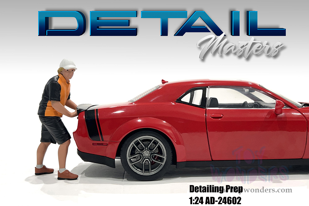 AD-24602 Showcasts® Figurines - Detail Masters Figure 2 - Detail Prep. 1:24 scale male in a black and orange uniform. Hand painted poly-resin material. Only the figurine is included. This 2.75"H figure is great for decorating 1:24 scale cars and dioramas. Packed in a blister card. Card size: 4" x 7.5". 12 pcs. per inner. Note: Vehicle is not included.