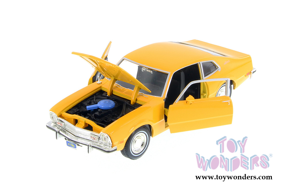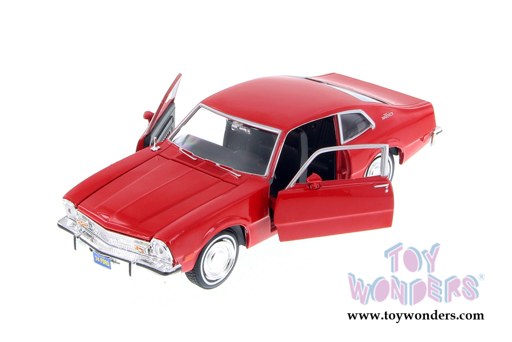 73326/16D Showcasts Collectibles - 1974 Ford Maverick Hardtop. 1:24 scale diecast collectible model car. This Ford Maverick is a 7.5"Lx 2.75"Wx 2.25"H diecast metal car with freewheeling, openable hood and doors. The Ford Maverick is manufactured by Motor Max Toys. 4 pcs per display box in assorted colors. 16 pcs per inner box.