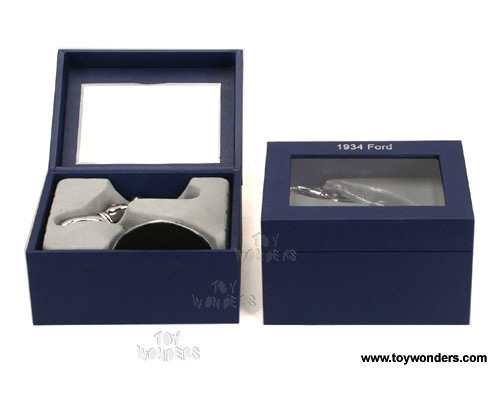 18047H SIGNATURE MODELS - 1928 Ford Model A Flying Quail Hood Ornament. This Ford Model A Flying Quail Hood Ornament is 3.25"Lx 2.75"Wx 2.75"H. diecast metal with a gift case. Case size: 5.4"Lx 4"Wx 3.25"H. Manufactured by Signature Models. 18047H is in SILVER color.