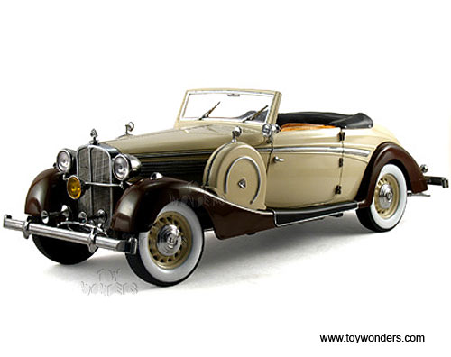 38205 Signature Models Premier Miniature - 1937 Maybach SW38 2-Doors Spohn Convertible. 1:18 scale diecast collectible model car. This Maybach SW38 2-Doors Spohn is an 11.25'L x 4"W x 3.5"H die-cast metal oldies car with openable doors, hood & trunk. Sits on a display platform. This 1937 Maybach SW38 2-Doors Spohn is manufactured by Signature Models. Item 38205 is in TAN & BROWN 2-tone colors. Individually packed in a window box. Box size: 14"L x 7"W x 6"H.