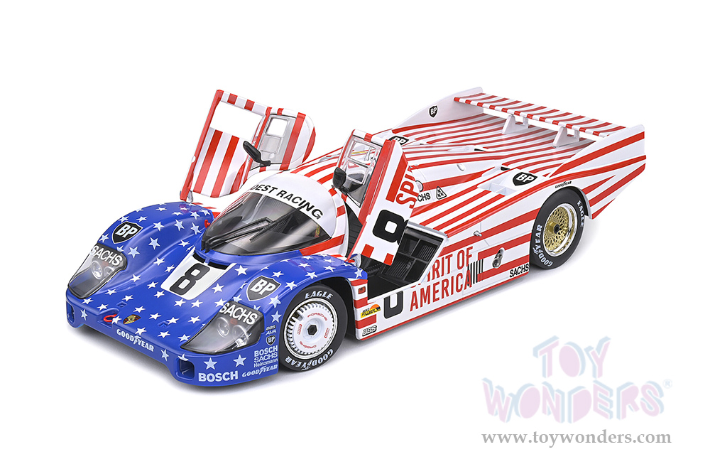 Solido Competition - Porsche 956LH RHD #8 G. Follmer - J. Morton - K. Miller "Spirit of America" 24H of Le Mans (1986, 1/18 scale diecast model car, Red/White/Blue) S1805503