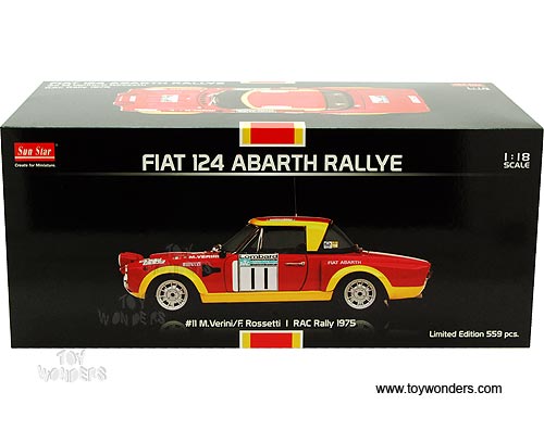 Sun Star Classic Rally - Fiat 124 Abarth Race Car M.Verini/F.Rossetti #11 (RAC Rally 1975, 1/18 scale diecast model car, Red) 4951