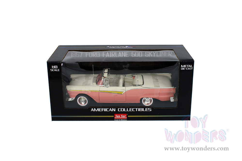 Sun Star - Ford Fairlane 500 Skyliner (1957, 1/18 scale diecast model car, Sunset Coral/Colonial White) 1344
