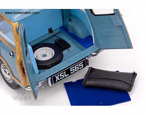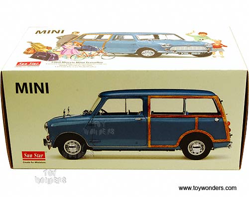 5311 Sun Star Mini - 1960 Morris Mini Traveller. 1:12 scale diecast collectible model car. This Morris Mini Traveller is about 10.5" long die-cast metal car with openable hood, side doors & rear doors. Limited edition 1 of 999 pcs with numbered certificate. Manufactured by SunStar. Item 5311 is in CLIPPER BLUE color. Individually packed in a box. Box size: 13"L x 7.25"W x 6.25"H.