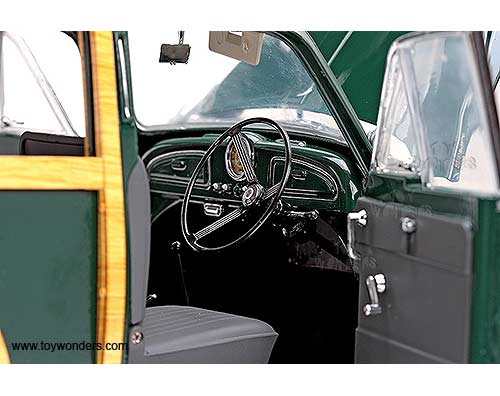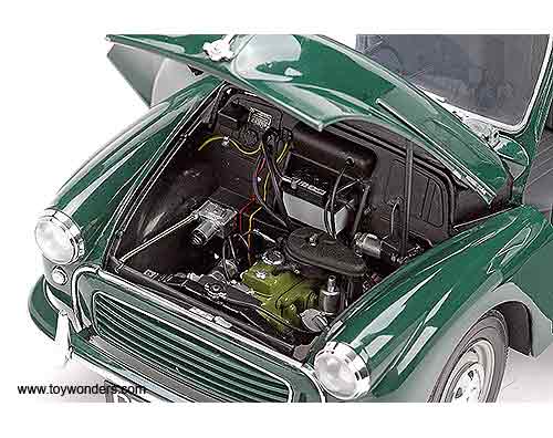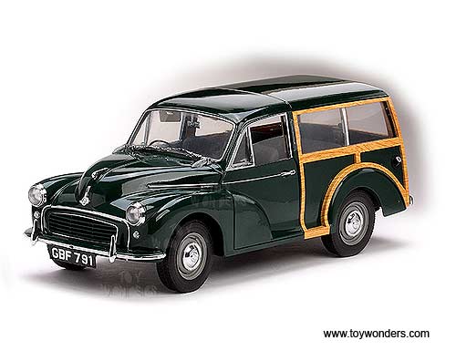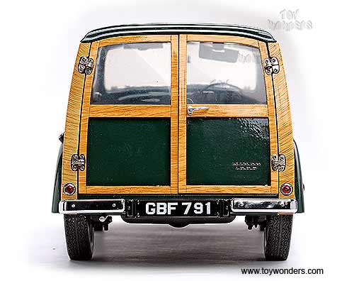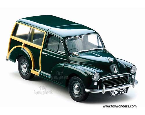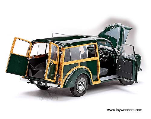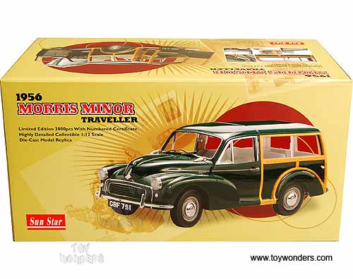 4791 SUN STAR - 1956 Morris Minor Traveller. 1:12 scale diecast collectible model car. This 1956 Morris Minor Traveller is an die-cast metal car with openable hood, side & rear doors. This 1956 Morris Minor Traveller is manufactured by SunStar. Item 4791 is in DARK GREEN color. Individually packed in a window box. Box size: 14.875"L x 7.75"W x 8"H.