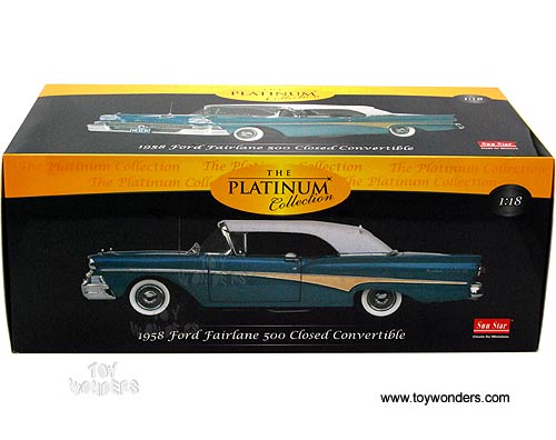 Sun Star Platinum - Ford Fairlane 500 Closed Convertible (1958, 1/18 scale diecast model car, Silverstone Blue w/ White) 5282