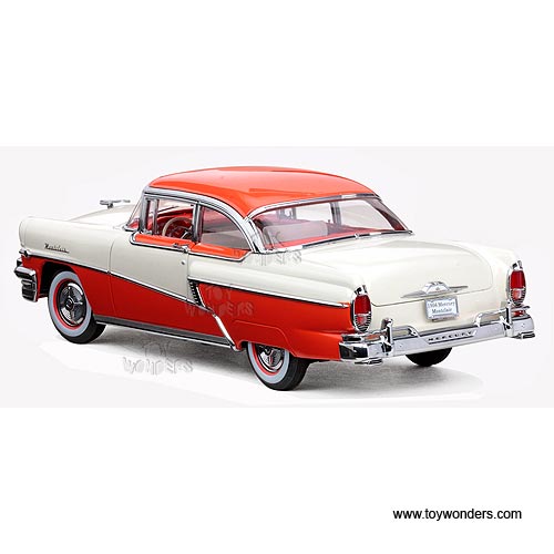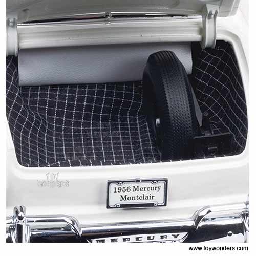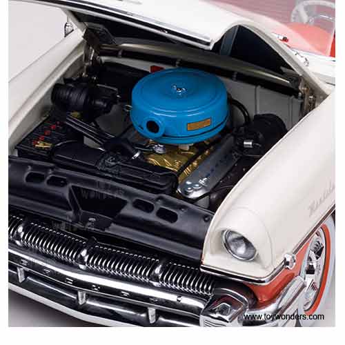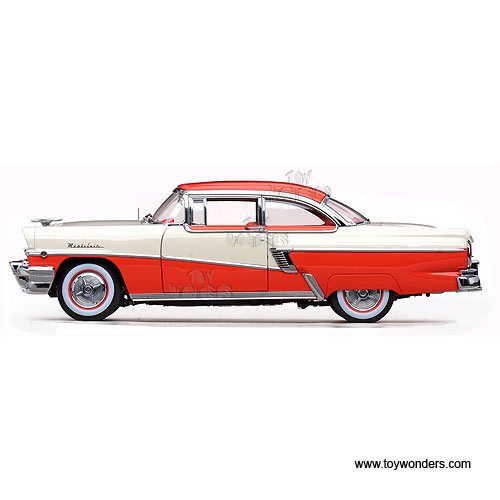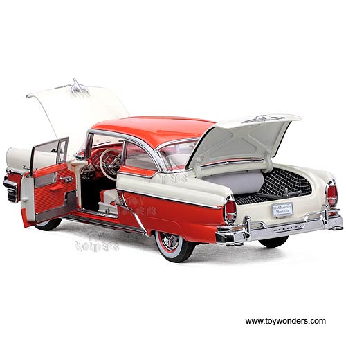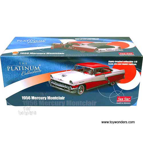5141W Sun Star Platinum - 1956 Mercury Montclair Hard Top. 1:18 scale diecast collectible model car. This Mercury Montclair is an 11.5"L x 4"W x 3.25"H die-cast metal car with openable hood, doors & trunk. The 1956 Mercury Montclair is manufactured by SunStar. Item 5141 is in PERSIMMON & WHITE 2-tone colors. Individually packed in a window box. Box size: 14.75"L x 6.75"W x 6"H.