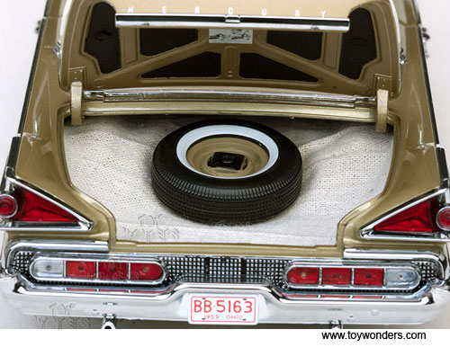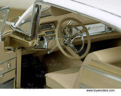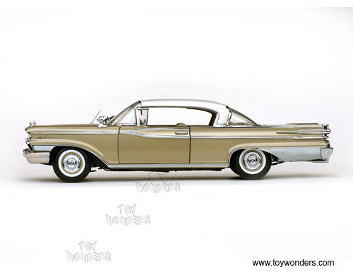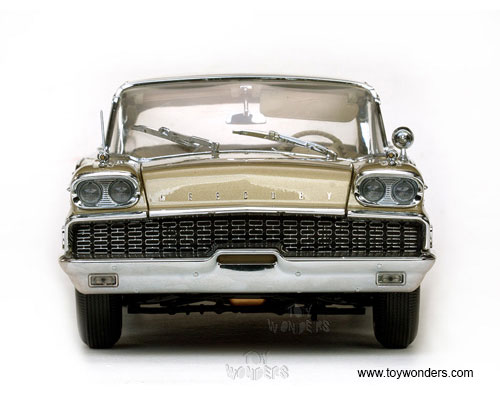 5163 Sun Star Platinum - 1959 Mercury Park Lane Hardtop. 1:18 scale diecast collectible model car. This Mercury Parklane is about 12"L diecast metal car with openable hood, doors, and trunk. The 1959 Mercury Parklane is manufactured by Sun Star. Item 5163 is in MARBLE WHITE/Golden Beige color. Individually packed in a box. Box size: 14.5"L x 6.75"W x 6"H.