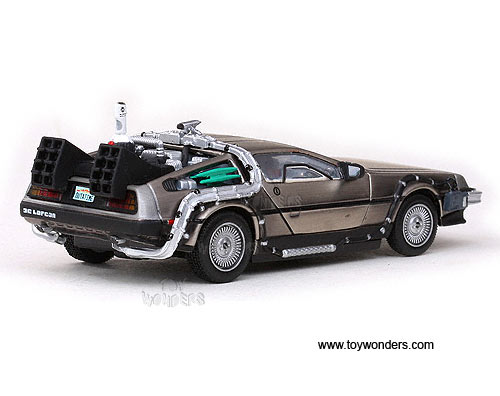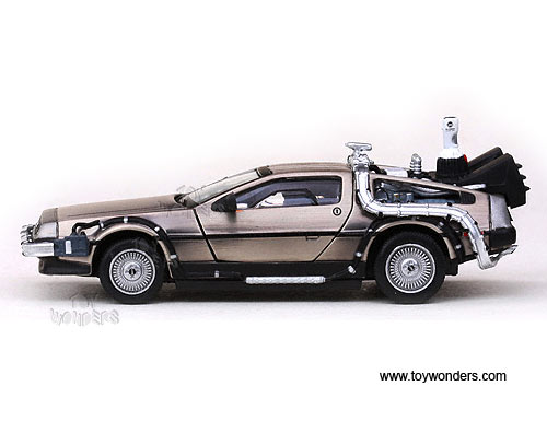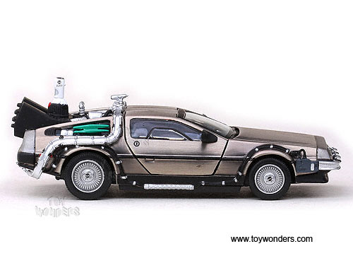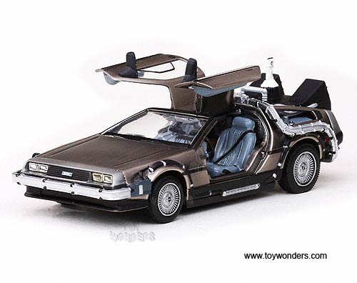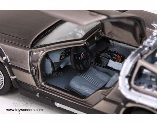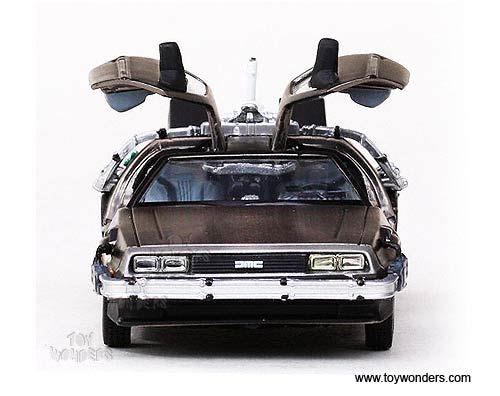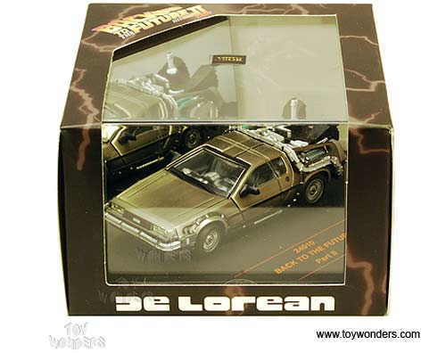 24010/6 Sun Star Vitesse - Back To The Future Part II DeLorean. 1:43 scale diecast collectible model car. This DeLorean is a 4"L x 1.75"W x 1.25"H, diecast metal car with opening doors. Individually packed in a hard plastic case. Case size: 4.5"Lx 4.5"Wx 3"H. This DeLorean is manufactured by Sunstar. 24010/6 is in STAINLESS STEEL color.