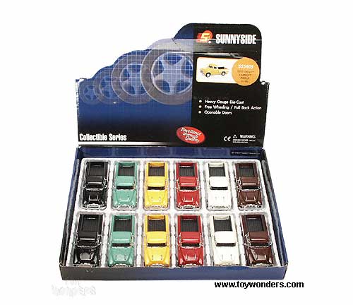 5605D Superior - 1957 Chevy Cameo Pickup Truck. 1:38 scale diecast model car. This 1957 Chevy pick-up is 5.25" diecast metal free wheel pick up truck w/ openable doors & tailgate in asstd. colors. The 57 Chevy Cameo is manufactured by Superior; Sunnyside. 12 pcs per display box and 48 pcs per inner box. 5605 in assorted colors. Z8. GM is a trademark of the General Motors Corporation.