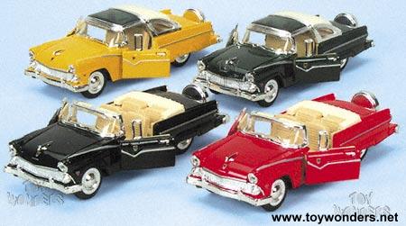 6705/6D 1955 Ford Crown Victoria. 1:34 scale diecast model car. This 1955 Ford Crown Victoria is a 6" L x 2"W x 2"H diecast metal oldies with opening doors/hood. In convertible & hardtop styles. This 55 Ford Crown Victoria is manufactured by Superior/Sunnyside. 12 pcs per display box. 48 pcs per inner box. 6705 in assorted colors.